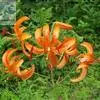 东北百合,别名卷莲花、老哇芋头、轮叶百合、伞蛋花、山丹花,为百合科、百合属多年生球根花卉。鳞茎卵圆形,白色,有节。苞片叶状,花淡橙红色,具紫红色斑点;花被片稍反卷,蒴果倒卵形,花期7-8月,果期9月,…全部>>