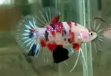 孔雀花鳉 ,俗名孔雀鱼,也称为凤尾鱼、彩虹花鳉、虹鳉、古比鱼等,是花鳉科花鳉属的一种热带鱼,雌雄鱼的体型和色彩差别较大,成年雄鱼身体瘦小,体长3-4厘米,体色绚烂多彩、体型优美;成年雌鱼体长5厘米…全部>>