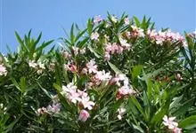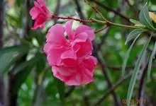 夹竹桃,又名红花夹竹桃、欧洲夹竹桃,是夹竹桃科夹竹桃属的一种常绿直立大灌木,枝条灰绿色,含水液。叶披针形,3叶轮生。聚伞花序顶生,花冠粉红至深红色,花冠漏斗状,有特殊香味。蓇葖果,圆柱形。种子长圆形,…全部>>