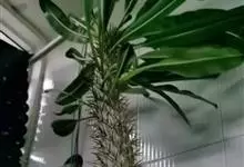 非洲霸王树,是夹竹桃科棒锤树属多肉植物。非洲霸王树茎干肥大挺拔,圆柱形、褐绿色;茎顶丛生翠绿色长广线形叶片,尖头,叶柄及叶脉淡绿色;花白色,中央黄色,有清香;开花期多在春季至早夏。…全部>>