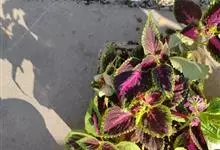 五彩苏 Benth.),是唇形科鞘蕊花属草本植物。五彩苏的茎通常紫色,四棱形,具分枝;叶膜质,通常卵圆形,边缘具圆齿状锯齿或圆齿,色泽多样,有黄、暗红、紫色及绿色;叶柄伸长,…全部>>