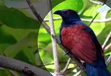 褐翅鸦鹃,是鹃形目鸦鹃科鸦鹃属的鸟类。褐翅鸦鹃的身体为黑色;头颈和胸带蓝紫色金属光泽并具黑亮的羽干纹,下胸至腹部泛金属绿光泽;两翼和肩部为棕栗色,外侧飞羽具暗色羽端,尾羽闪铜绿色光泽;虹膜赤红色,…全部>>