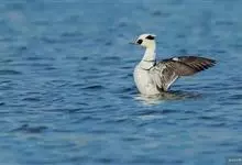斑头秋沙鸭,是鸭科、斑头秋沙鸭属鸟类。雄鸟眼先和眼周黑色,成块斑状;头部其余部分全为白色。颈白色;背黑色,上背最前处的白羽具有黑端,相连而成两条半圆环狭带。下体白色,体侧羽毛具黑褐色波状细纹。…全部>>