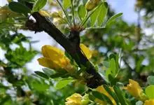 柠条锦鸡儿是豆科锦鸡儿属植物,灌木,有时小乔状,高1-4米;老枝金黄色,有光泽;嫩枝被白色柔毛。羽状复叶有6-8对小叶;托叶宿存;叶轴脱落;小叶披针形或狭长圆形,先端锐尖或稍钝,有刺尖,灰绿色。花梗…全部>>