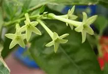 夜香树是茄科、夜香树属直立或近攀援状灌木。枝条细长而下垂。叶有短柄,叶片矩圆状卵形或矩圆状披针形,全缘,顶端渐尖,基部近圆形或宽楔形,两面秃净而发亮,有6-7对侧脉。伞房式聚伞花序,腋生或顶生,…全部>>