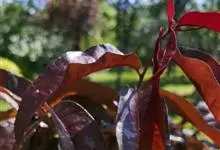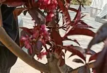紫叶桃花是李亚科,桃属植物桃的变种,叶为窄椭圆形至披针形,长15厘米,宽4厘米,先端成长而细的尖端,边缘有细齿,暗绿色有光泽,叶基具有蜜腺;树皮暗灰色,随年龄增长出现裂缝;花单生,从淡至深粉红或红色,…全部>>