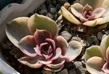 紫珍珠是景天科石莲花属的多年生肉质草本植物。植株中小型;叶片肉质,匙形,呈莲座状紧密排列;叶片粉紫色,叶缘呈粉白色,光照充足时颜色亮丽,不足时叶色会呈现深绿色或灰绿色,叶面光滑,被轻微白粉,…全部>>