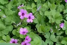 红花酢浆草别名铜锤草、大酸味草、幸运草等,是酢浆草科酢浆草属的多年生直立草本植物。其无地上茎,地下部有球状鳞茎;叶基生,叶柄长5~30cm或更长,被毛;花瓣5,倒心形,淡紫色至紫红色,基部颜色较深。…全部>>