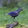 紫啸鸫是雀形目鹟科啸鸫属鸟类,又称黑雀儿,山鸣鸡、乌精。成鸟眼先及颏绒黑色;前额、头顶至背及肩羽和颈侧呈深紫蓝色,羽端具较密集的亮蓝色点斑;腰至尾上覆羽的深紫蓝色较暗而杂黑褐色,…全部>>