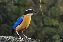 蓝翅八色鸫是雀形目八色鸫科的鸟类。体长17-20厘米,体重类约48-70克,体型圆胖,尾短,腿长,以身体具有红、绿、蓝、白、黑、黄、褐、栗等鲜艳夺目,丰富艳丽的色彩而得名,是很有观赏价值的鸟类。主要…全部>>