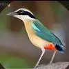 绿胸八色鸫:是雀形目八色鸫科的鸟类,共有12个亚种。体长为16-18厘米,体重65-69克。体型圆胖,尾短,腿长。头黑,上体绿色,两翼深色而具白色斑纹,头顶至后枕深褐,胸及腹部苹果绿,臀亮红。…全部>>
