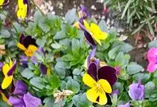 角堇:为堇菜科堇菜属多年生草本植物。株高10-30厘米 ,宽幅20-30厘米。具根状茎。茎较短而直立,分枝能力强。花两性,两侧对称,花梗腋生,花瓣5,花径 2.5-4.0厘米。花色丰富,…全部>>