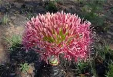 网球花是石蒜科,网球花属多年生草本植物。鳞茎球形,叶片长圆形,叶柄短,鞘状。花茎直立,实心,高可达90厘米,先叶抽出,淡绿色或有红斑;伞形花序具多花,花红色;花被管圆筒状,花被裂片线形,花丝红色,…全部>>