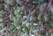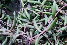 紫玄月是菊科厚敦菊属多年生肉质草本植物。蔓长30-60厘米;茎紫色;叶对生或互生茎上肉质,叶片细圆柱形,中间粗两端细稍弯曲;花序着生于叶腋,头状花序,舌状花黄色,管状花黄色;花期全年。…全部>>