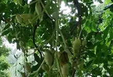 葫芦树是紫葳科、葫芦树属乔木,高5-18米;枝条开展,分枝少。叶丛生,2-5枚,大小不等,阔倒披针形,顶端微尖,基部狭楔形,具羽状脉。花单生于小枝上,下垂。花冠钟状,微弯,淡绿黄色,具有褐色脉纹,…全部>>