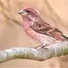 红眉朱雀:体长15厘米,是一种中等体型的朱雀。上体褐色斑驳,眉纹、脸颊、胸及腰淡紫粉,臀近白。雌鸟无粉色,但具明显的皮黄色眉纹。雄雌两性均甚似体型较小的曙红朱雀,但嘴较粗厚且尾的比例较长。…全部>>