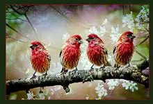 普通朱雀是雀形目雀科朱雀属鸟类,又名红朱雀、马料、青麻料。雄鸟上体红色,下体淡红色;头部、喉部、胸部及腰部亮红色;背部褐色染红色;两翼及尾黑褐色,羽缘染红色。雌鸟上体橄榄褐色,下体近白色,…全部>>