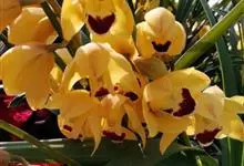 大花蕙兰,兰科兰属的常绿附生草本植物。大花蕙兰的假鳞茎椭圆形,粗大;根多为肉质圆柱状,粗壮肥大,大都呈灰白色;叶宽而长,下垂,浅绿色有光泽;花亭斜生,稍弯曲;花大,色泽艳丽,…全部>>