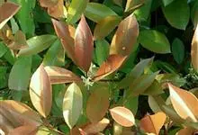 红叶石楠 是蔷薇科,石楠属杂交种,为常绿小乔木或灌木,乔木高可达5米、灌木高可达2米。叶片革质,长圆形至倒卵状、披针形,叶端渐尖,叶基楔形,叶缘有带腺的锯齿,花多而密,复伞房花序,花白色,梨果黄红色,…全部>>
