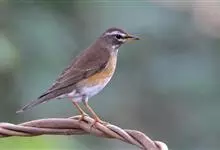 白眉鸫,是脊索动物门鸟纲雀形目鸫科鸫属中等体型的灰褐色鸫类。雄鸟头、颈、顺部至上颈灰色,具白色眉纹和下眼圈,眼先深色,上背至尾上覆羽橄榄褐色,上胸和两胁栗褐色,下胸、腹部和尾下覆羽白色,…全部>>