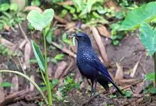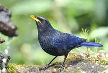 紫啸鸫是雀形目鹟科啸鸫属鸟类,又称黑雀儿,山鸣鸡、乌精。成鸟眼先及颏绒黑色;前额、头顶至背及肩羽和颈侧呈深紫蓝色,羽端具较密集的亮蓝色点斑;腰至尾上覆羽的深紫蓝色较暗而杂黑褐色,…全部>>