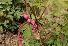荷包牡丹 Fukuhara),是罂粟科荷包牡丹属的多年生草本植物,株高30-60厘米,具肉质根状茎;茎直立呈圆柱形;叶二回三出全裂,状似牡丹叶;总状花序顶生,基部为心形,花瓣紫红色至粉红色,稀白色,…全部>>