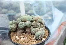 乌羽玉 Coult)是仙人掌科乌羽玉属的多年生肉质植物。老株丛生,萝卜状肉质根,球体偏球形,表皮暗绿色或灰绿色,株高5-8cm,棱垂直或呈螺旋状排列,顶部多绒毛,小花钟状或漏斗形,淡粉色至紫红色,…全部>>