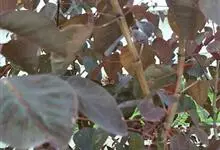 紫锦木是大戟科、大戟属的常绿乔木。叶圆卵形,主脉于两面明显,侧脉数对,边缘全缘,两面红色;花序生于二歧分枝的顶端,总苞阔钟状,裂片呈三角形,边缘具毛,腺体深绿色呈半圆形,…全部>>
