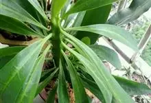 霸王鞭,是大戟科大戟属的多年生肉质灌木,全株含白色乳汁;茎直立,茎基部圆柱形,上部4~5纵棱,边缘波状,外面深绿色;叶互生,上部叶密集,近于簇生,具短柄,其基部有利刺1对;叶片披针形,先端圆,…全部>>