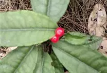 朱砂根是报春花科紫金牛属植物,又名铁凉伞、红铜盘、百两金、大罗伞、开喉箭等,为常绿小灌木,高1~2米,茎粗壮,无毛,除侧生特殊花枝外,无分枝,叶片革质或坚纸质,椭圆形、椭圆状披针形至倒披针形,…全部>>
