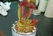 红瓶子草是一种相对体形较大、气质高雅的食虫植物,叶子成瓶状直立,颜色鲜艳,共有五个亚种。瓶高在26- 61厘米之间,整个红色。形态和猪笼草的笼子相似,能分泌蜜汁和消化液,受蜜汁引诱的昆虫失足掉落瓶中,…全部>>