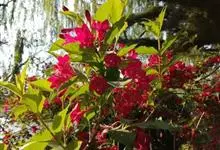锦带花 A. DC.)是忍冬科锦带花属落叶灌木;树皮灰色;芽顶短尖,常光滑;叶矩圆形、椭圆形或卵状椭圆形,顶端渐尖,边缘有锯齿,脉上毛较密,具短柄或无柄;花单生或成聚伞花序生于侧生短枝的叶腋或枝顶,…全部>>