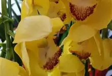 大花蕙兰,兰科兰属的常绿附生草本植物。大花蕙兰的假鳞茎椭圆形,粗大;根多为肉质圆柱状,粗壮肥大,大都呈灰白色;叶宽而长,下垂,浅绿色有光泽;花亭斜生,稍弯曲;花大,色泽艳丽,…全部>>