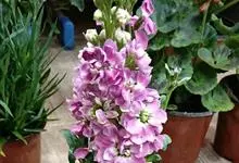 紫罗兰 W.T.Aiton)是十字花科紫罗兰属植物。二年生或多年生草本。植株高60厘米,布满灰白色的分枝柔毛;茎直立,多分枝,基部稍木质化;叶片为长圆形、倒披针形或匙形;总状花序顶生和腋生;花多数,…全部>>