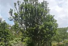 金刚纂,是大戟科大戟属的肉质灌木状小乔木。茎圆柱状,上部多分枝,叶片互生,少而稀疏,顶端钝圆,基部渐狭;花序二歧状腋生,苞叶膜质,总苞阔钟状,裂片半圆形,边缘具缘毛,雄花多枚;花期6-9月。…全部>>