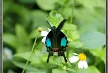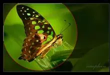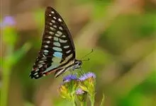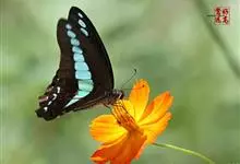 青带凤蝶Graphium sarpedon ,又名青凤蝶,是最普遍的中型凤蝶,飞行速度很快。青带凤蝶的翅膀中央有许多浅蓝色的斑点,很整齐地排列成一条直线。这些斑点由上而下逐渐变大,就像一条青色的带子。全部>>