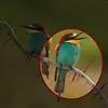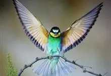 栗喉蜂虎是蜂虎科蜂虎属的鸟类。有热带鸟类羽毛艳丽的特征:喉部是栗红色的,黑色的过眼纹,翅膀和背部是绿色的,尾翼是蓝色的,飞行时翅膀下面的羽毛是橙黄色的,在阳光的照射下,它们全身闪烁着金属般的艳丽光泽,…全部>>