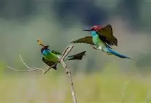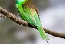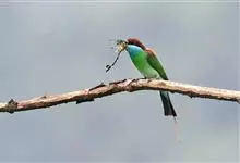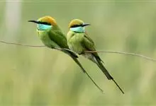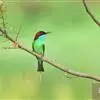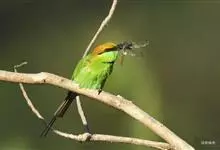 绿喉蜂虎是佛法僧目、蜂虎科的小型鸟类,共有9个亚种。身长22-25厘米,翼展29-30厘米,体重15-20克。喉绿色,额部、头顶至上背为锈红色,其余上体均为亮绿色。中央尾羽延长且端段狭细,…全部>>