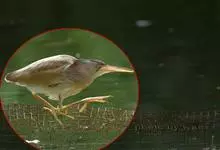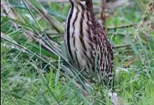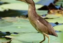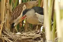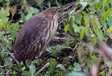 紫背苇鳽是鹭科、苇鳽属动物,为涉禽,体长约33厘米。头顶黑色,后头至尾上覆羽暗栗褐色;翅上覆羽橄榄黄色;下体浅棕黄色。多生活于水库和山脚边的稻田、芦苇丛、滩涂及沼泽草地,在西藏见于海拔2300米的农田,…全部>>