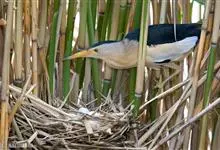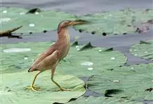 黄苇鳽是鹈形目鹭科苇鳽属鸟类。成鸟顶冠黑色;上体淡黄褐色,下体黄色,下颈基部和上胸具黑褐色块斑;黑色飞羽与黄白色覆羽成强烈对比;虹膜金黄色;眼先裸露呈黄绿色;喙峰黑褐色,…全部>>