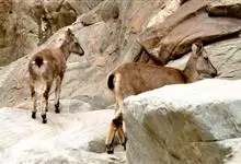 岩羊是偶蹄目牛科岩羊属哺乳动物。颜色与岩石相像,两性皆具角,雄羊角大而弯曲,角外表具不明显的横棱且体壮实,雌羊角短小;头较小,眼大,耳小,颏下无须;体背面为棕灰或石板灰色略有蓝色反光,…全部>>