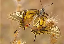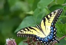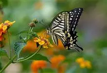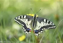 金凤蝶,是鳞翅目凤蝶科凤蝶属动物。金凤蝶为中型凤蝶,翅展70-84毫米,翅背面底色黑褐色,翅脉黑色,翅室具黄斑;前翅背面基部呈暗黄色,亚外缘为黑色,内具一列小黄斑;后翅背面亚外缘区具黑宽边,…全部>>