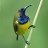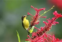 黄腹花蜜鸟是雀形目太阳鸟科花蜜鸟属鸟类。体型较小、喙略短而弯、腹部黄色。雄鸟繁殖季节颏及胸黑紫色并泛金属光泽,具有绯红色及灰色胸带,将上腹部黑色斑与前胸隔开,肩斑为橙黄色丝质羽,上体橄榄绿色,…全部>>