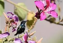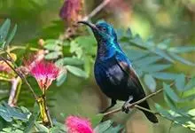 紫色蜜鸟为太阳鸟科花蜜鸟属的鸟类。分布于阿拉伯、伊朗、阿富汗、印度、尼泊尔、锡金、孟加拉、中南半岛、斯里兰卡以及中国大陆的云南等地,多栖息于海拔约950米以下的常绿阔叶林或村寨附近的丛林间。…全部>>