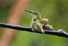 纹背捕蛛鸟:为太阳鸟科捕蛛鸟属的鸟类。是太阳鸟科中体型较大的一种,体重25-45克,体长160-210毫米。嘴粗长而尖且向下弯曲。上体橄榄黄色具黑色中央斑纹。下体淡黄白色满布黑色纵纹,尾具黑色次端斑。…全部>>