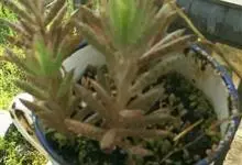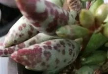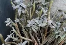 棒叶落地生根是景天科、落地生根属植物。茎直立、粉褐色。叶圆棒形,上表面有沟、粉色,有红褐斑。叶片交互对生,交叉排列成十字形。叶端锯齿上长有很小的幼株、落地后即可生根成活。原产非洲马达加斯加。…全部>>