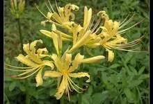 忽地笑 Herb.)是石蒜科石蒜属的多年生草本植物。鳞茎卵形;叶剑形,向基部渐狭,顶端渐尖,中间淡色带明显;苞片披针形;伞形花序,花呈黄色,花被裂片背面具淡绿色中肋,倒披针形,雄蕊略伸出于花被外,…全部>>