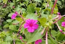 即紫茉莉,英文名:Four-o'clock,Marvel of Peru,为紫茉莉科、紫茉莉属多年生草本植物,一年生栽培。株高50~80cm。根粗壮,茎多分枝而散生。叶对生,卵形或心脏形。花数朵簇生…全部>>