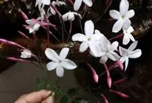 素馨花,木犀科素馨属多年生的攀援灌木植物。攀援灌木,小枝圆柱形,具棱或沟;叶对生,叶轴常具窄翼,小叶片卵形或长卵形;聚伞花序顶生或腋生,花序梗长,苞片线形,花萼无毛,裂片锥状线形,花冠白色,…全部>>