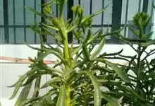 伽蓝菜是景天科伽蓝菜属植物。多年生草本,高20-100厘米。叶对生,中部叶羽状深裂,全长8-15厘米,裂片线形或线状披针形。聚伞花序排列圆锥状,长10-30厘米;苞片线形。花期3月。…全部>>